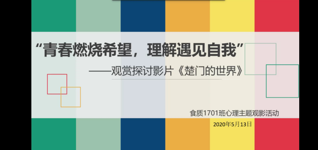 各班心理保健委员根据班级同学的意向选择共同观看的影片。食科1901、1907和食质1901选择观看经典励志影片《肖申克的救赎》,明白永远不失希望的重要性;食科1902、1803选择了《当幸福来敲门》,在感动于主人公的拼搏精神之余,同学们更加坚定要学会守护自己的梦想、学会坚持和努力;食科1903集体观看了《寻梦环游记》,在体悟亲情的温暖中收获对生命的思考;食科1904观看《遗愿清单》,让同学们懂得珍惜时光,活在当下;食科1906、食质1701选择观看《楚门的世界》,使同学们珍视平凡的生活,大三年级的同学们更是将观影感受与个人发展联系起来,对做好职业生涯规划有所感悟;食科1908观看《小偷家族》,重新认识了对于幸福的定义;食质1902观看《土拨鼠之日》,食科1905观看《请以你的名字呼唤我》,食科1909观看《怦然心动》,都在细腻的情感故事中获得对命运的思考。食科1709因为同学们课程时间的差异,选择以宿舍为单位开展观影活动,同时鼓励同学们与家人一同观看,共同放松心情、交流感悟。