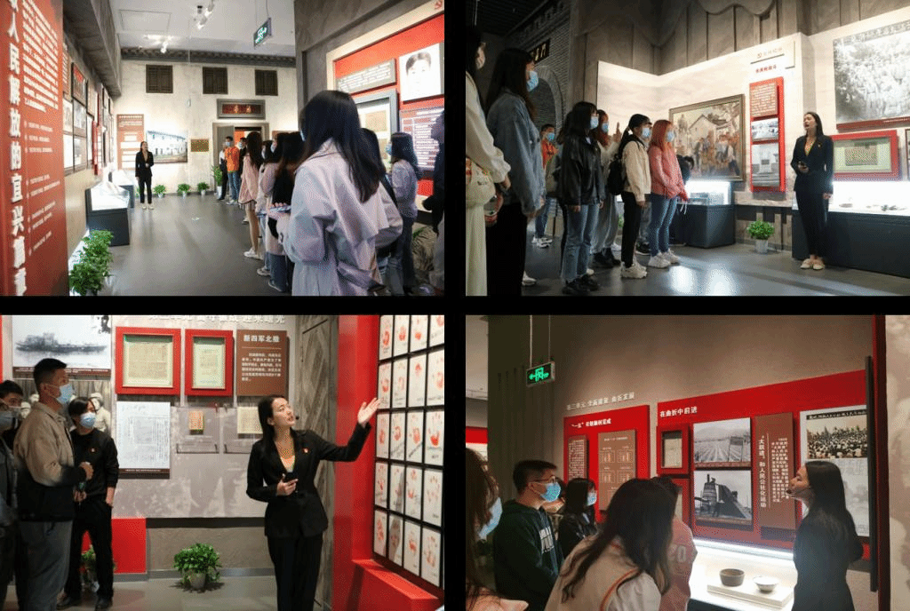 随后,党员同志们前往宜兴党史陈列馆继续参观学习,跟随专业讲解员的深入介绍,党员同志们重温了宜兴的革命历史和先辈们的英勇事迹。大家边走、边看、边学,一段段珍贵的文字,一幅幅泛黄的老照片,一件件承载着历史记忆的文物,充分展示了中国共产党历经百年的辉煌历程。宜兴的地方党史,让大家深受感染和震撼。党员同志们除了见到大量珍贵的文件、书刊、照片等革命文物的震撼外,更多的是引发出对历史的深思,在介绍到革命烈士曾经使用过的大刀、步枪、油灯等抗击日寇的老物件前,大家驻足思考。食硕1906党支部的王颖兰同志说到:“令我印象最深刻的是一面由抗战老党员的红手印组成的‘不能忘却的记忆’纪念墙。每一个手印的背后都承载了一桩桩历史事件,这部“走着读”的宜兴地方党史,让大家深受感染和震撼。党员是一面旗、一盏灯、一团火,身为中国共产党党员,我们要以身作则,用自己的实际行动来感染、引导身边的人。”