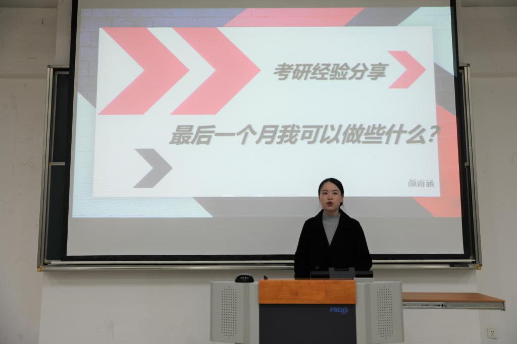 会议还邀请了2021届毕业生、1946伟德国际源自英国食硕2107班颜雨涵进行考研分享。颜雨涵同学分享了自己的备考状态,从各项考试科目的准备内容为考研学生提出建议,耐心解答同学们的问题。