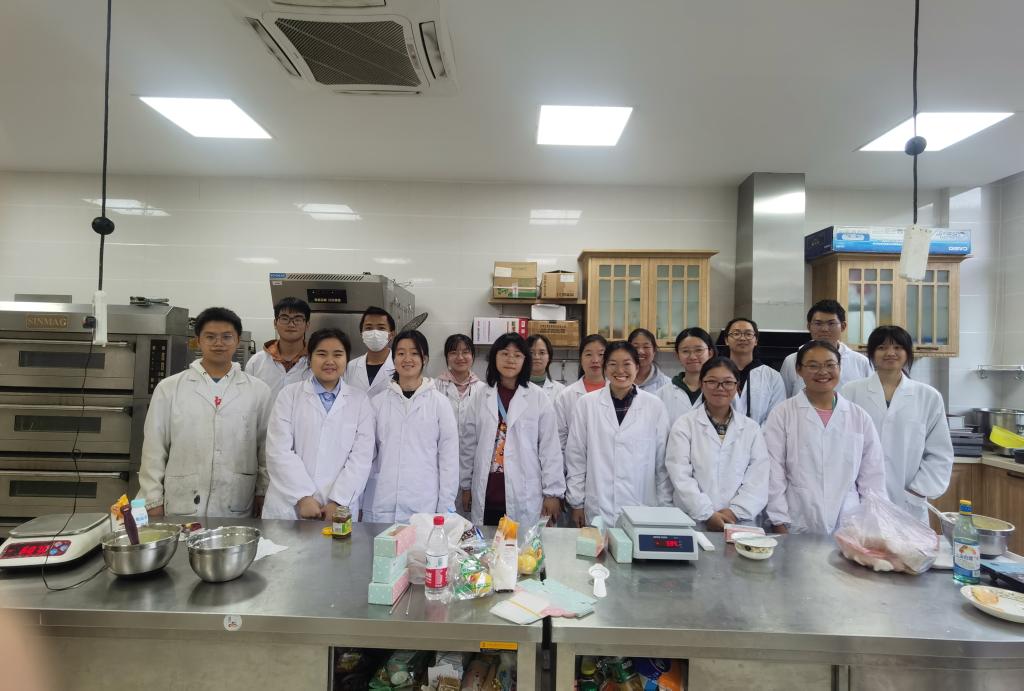 为了此次活动能够顺利进行,调味品俱乐部提前一天进行了产品试做,并提前半小时到达现场进行设备清洗及食材准备。调味品俱乐部选择了简单易学的松饼舒芙蕾进行现场指导教学。在俱乐部同学的指导下,新生按照操作步骤动手尝试,在团队合作中成功做出香甜松软的松饼舒芙蕾。新同学们兴奋地试吃自己的产品,并合影留念。