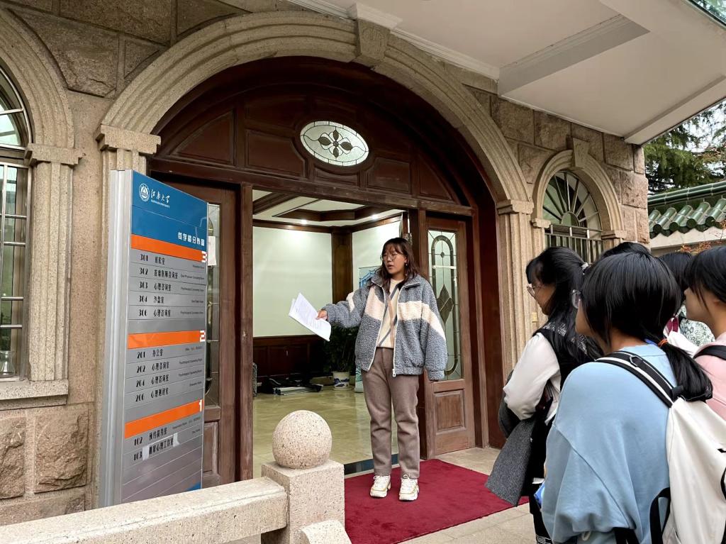 为增强同学们的心理求助意识,11月29日下午,食品心理健康与发展中心组织2021级新生参观学校心理健康教育中心笃学楼工作室。笃学楼参观引导志愿者带领15名新生开展参观活动。