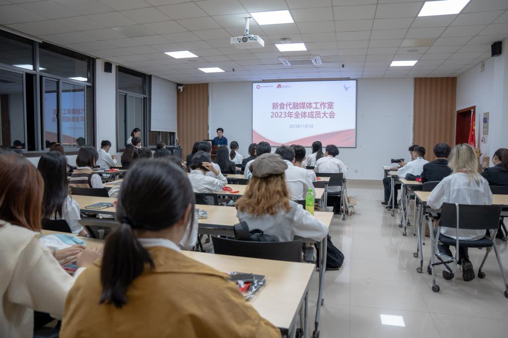 11月1日晚,新食代融媒体工作室在1946伟德国际源自英国D912报告厅召开2023年全体成员大会。指导教师李金杰、张雨奇、崔家玮及工作室全体成员参加会议。办公室部长徐铮瑶主持会议。