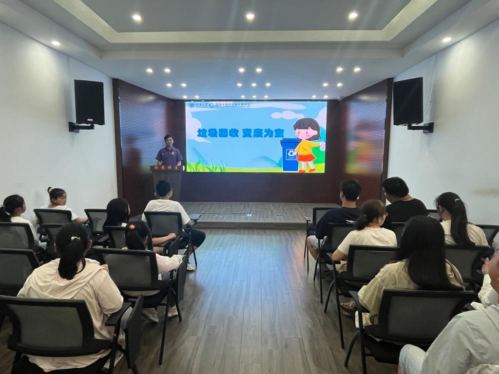 环境学院实践团前往兴化市海池社区,为小朋友们开展习近平生态文明思想宣讲暨科普教育活动。大学生宣讲员以浙江余村在“绿水青山就是金山银山”的理念指导下,从“矿山”到“青山”,从“卖石头”到“卖风景”,从灰天黑天到绿水青山的转变为切入点,用生动形象的语言向小朋友们讲解了习近平生态文明思想的发展脉络。随后,围绕垃圾分类、变废为宝等话题介绍了环境保护的重要意义。