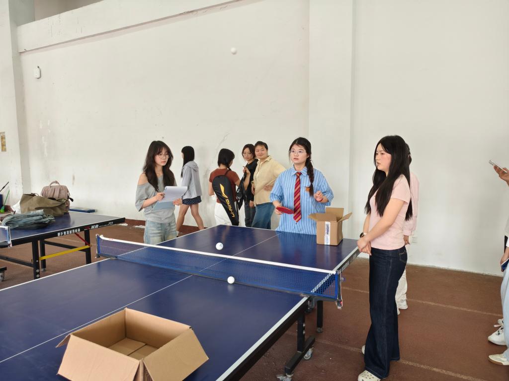 比赛进入白热化阶段,每位选手都拼尽全力,单打选手如猎鹰般精准把控落点,锐不可当;双打搭档似精密齿轮般无缝衔接,尽显风采。赛场上,叫好声、鼓励声此起彼伏,不绝于耳。那些拥有丰富赛场经验的教师与青春洋溢的学生搭档,早已将赛场上每一个人的热情点燃,共同书写着这场乒乓球赛的辉煌篇章。经过五轮鏖战,最终,由唐晓姝老师带领的食品3队夺得桂冠。