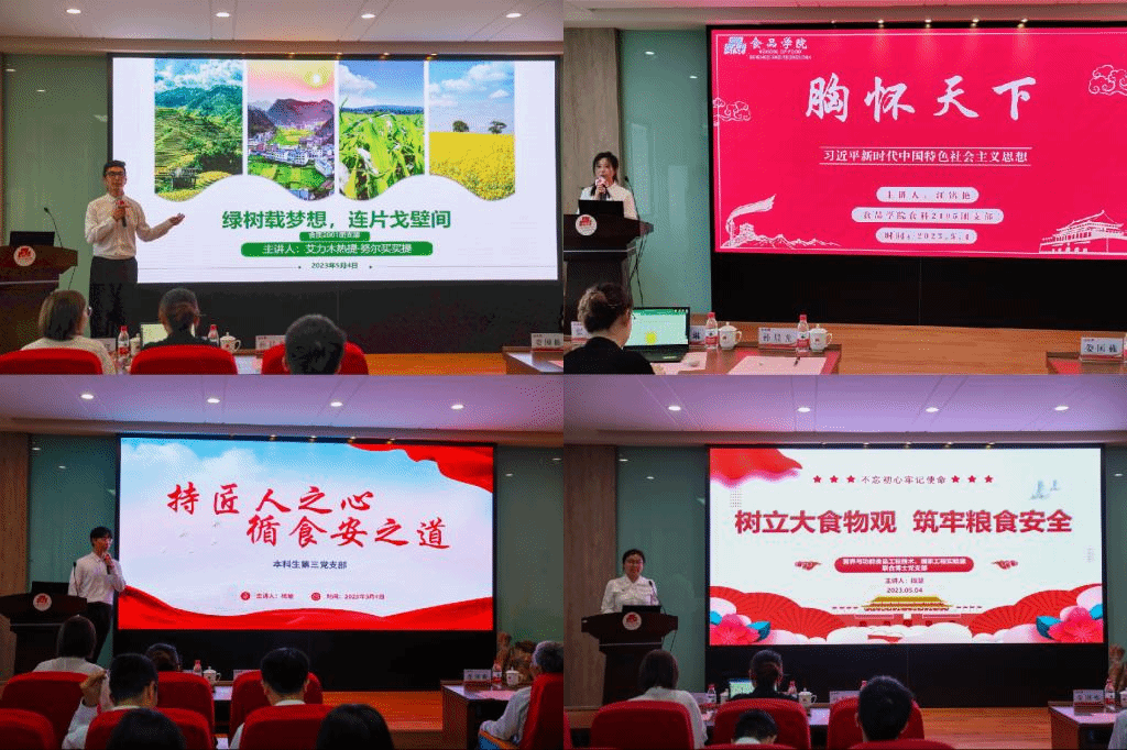 经过激烈角逐,食质2001团支部艾力木热提·努尔买买提的《绿树载梦想,连片戈壁间——农垦精神》和食科2105团支部江铭艳的《胸怀天下》荣获一等奖;以营养与功能食品工程技术、国家工程实验室联合博士党支部段慧的《树立大食物观,筑牢粮食安全》为代表的3个作品荣获二等奖;以食硕2201党支部白冰玉的《食品学科发展助力未来食品产业》为代表的6个作品荣获三等奖。