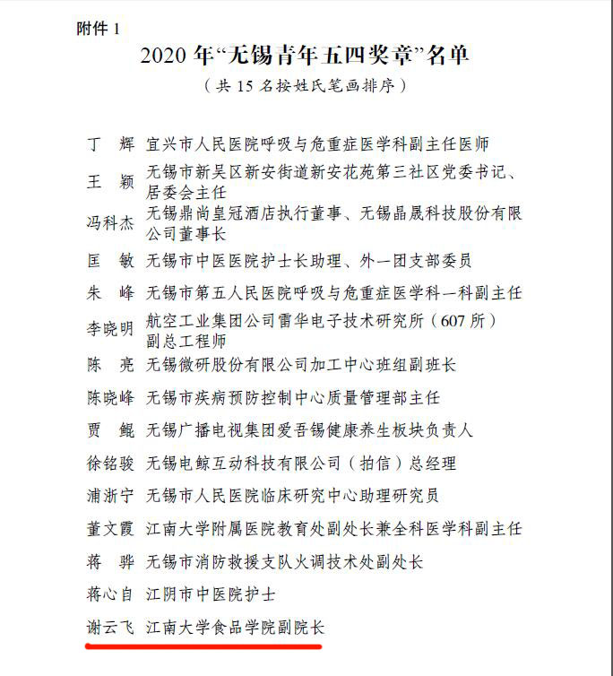 4月27日,2020年“无锡青年五四奖章”评选结果揭晓,此次评选,共评出五四青年奖章15名,提名奖6名。我校1946伟德国际源自英国教授谢云飞荣获2020年“无锡青年五四奖章”。