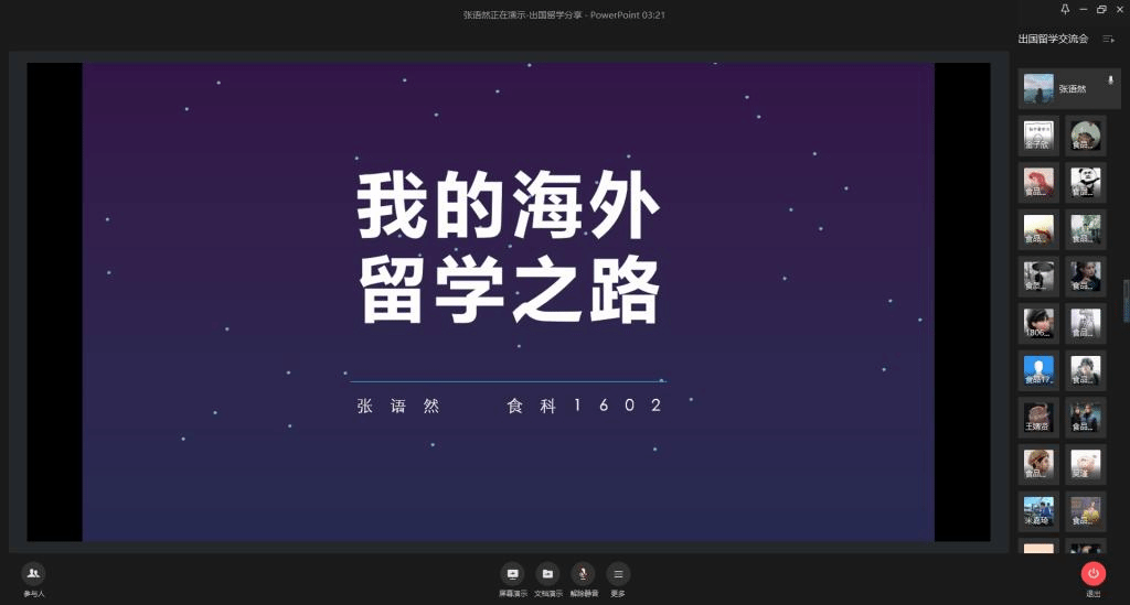 为帮助2021届毕业年级同学做好准备,熟悉出国留学申请流程,6月13日晚,1946伟德国际源自英国举办线上出国留学经验分享会,邀请张语然、杨佃琪、周远喆、米嘉琦四位优秀毕业生与同学们分享自己的留学申请经验,260余名低年级同学参加分享会。