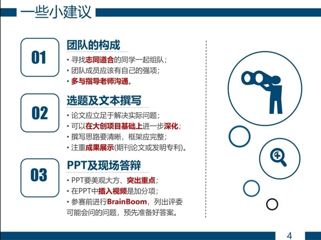 最后,荣膺第四届全国大学生生命科学创新创业大赛一等奖的刘思宇对全国大学生创业计划竞赛和全国大学生课外学术科技作品竞赛做出了具体阐述,包括两者的侧重点、赛组、赛制等,并就备赛方面给出了一些建议。她强调,指导老师的作用以及对参赛成果的展示十分重要。在分享的最后,她以自己“奔走在自己的热爱里,保持炙热坚持下去,于热爱中遇见更好的自己”的科创理念,与同学们互勉。