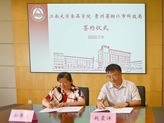会上,刘元法院长代表学院向赵震洋局长一行的到来表示热烈欢迎,学院与铜仁市的合作交流有多年的历史,合作成果丰富;学院一直鼓励和支持科研人员与铜仁企业技术合作、科研攻关,为铜仁市食品产业发展提供智力支持。随后,赵震洋局长讲话,介绍了铜仁市产业发展现状和配套政策情况,提出天麻、油茶等当地丰富特色农产品加工的迫切需求,希望双方建立长期合作机制,促进铜仁食品产业更高质量发展,为铜仁市打赢脱贫攻坚战贡献力量。院长助理程力介绍了学院情况和企业合作情况。最后,双方共同签署了铜仁市科技局-1946伟德国际源自英国合作框架协议书。