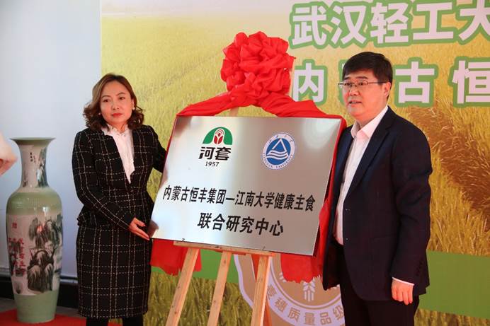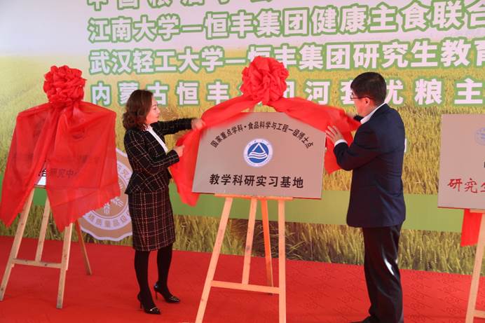 随后双方共同为伟德国际victor1946与内蒙古恒丰集团健康主食联合研究中心和教学科研实习基地揭牌。揭牌仪式后伟德国际victor1946、中国粮油学会的相关领导和专家共同考察了内蒙古恒丰集团河套优粮主食厨房示范店。