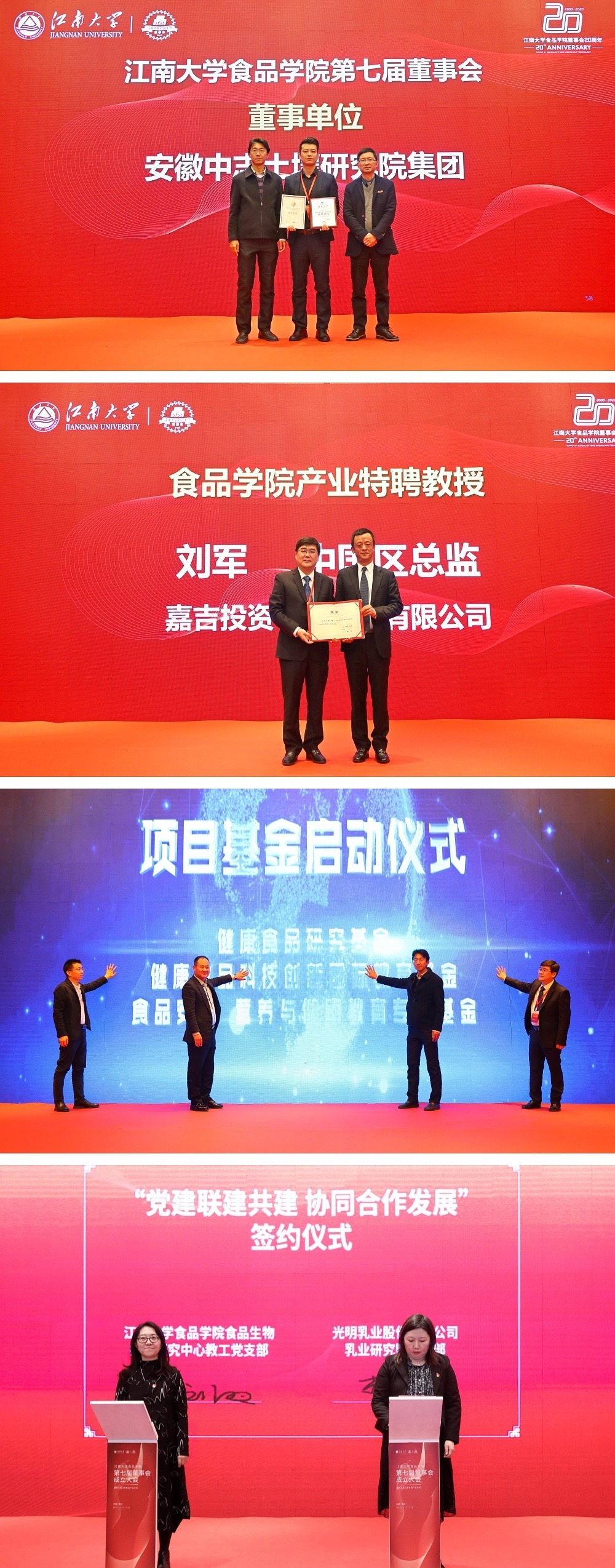 董事单位及健康食品产业创新发展共同体授牌仪式环节,1946伟德国际源自英国副院长程力宣读了第七届董事会董事单位成员名单,张凌浩副校长为董事单位成员颁发董事会成员证书,李强处长为董事单位颁发健康食品产业创新发展共同体证书。随后,刘元法院长为企业专家颁发产业特聘教授证书。