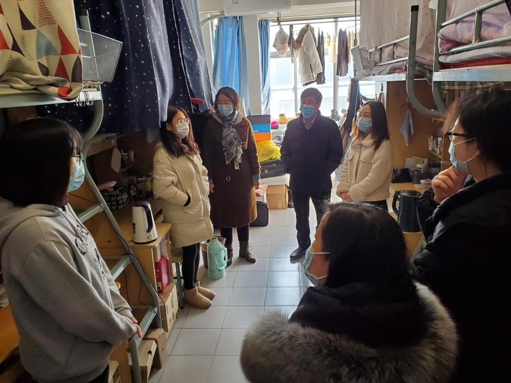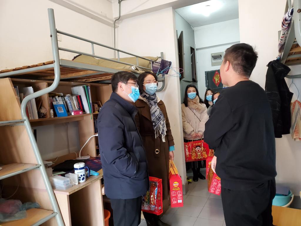 傅莉莉书记、刘元法院长一行来到本科生宿舍园区,看望因疫情防控暂缓返家的学生。傅莉莉书记详细询问了学生目前的生活、学习情况,表达了学院对于寒假留校学生的关心,嘱咐大家在疫情防控期间要按照统一部署,提高防范意识,做好科学防护,非必要不外出,及时关注权威发布,经常与辅导员、老师联系,遇到困难随时向学院反映。