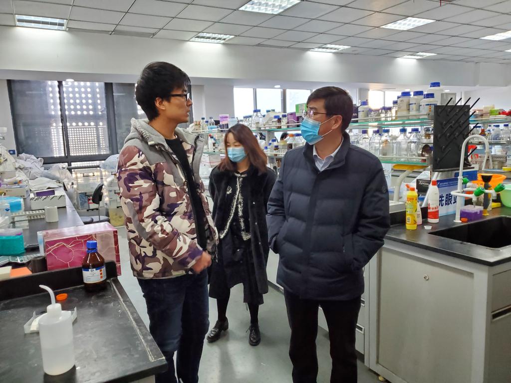 在学院实验室,刘元法院长特别关心尚未回家的研究生,了解他们的科研进展情况,与学生就实验安排、论文进展及择业就业等进行了深入的交流。他殷切叮嘱大家在实验室也要坚持常态化防疫,注意实验室安全,规律作息,合理安排好学习计划,为新学期开学提前做好准备。