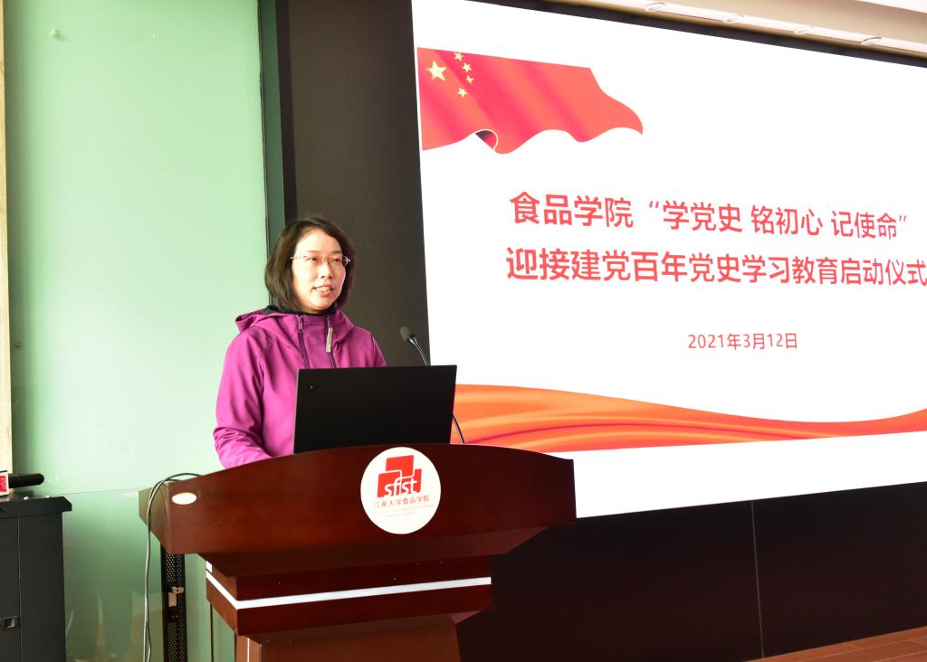 会议上,学院党委书记傅莉莉对党史学习教育工作进行了动员和部署,她说,党史学习教育是牢记初心使命、坚定理想信念,推进党的自我革命的必然要求,推进中华民族伟大复兴历史伟业的必然要求。她要求各个党支部都要围绕“学党史”组织开展学习活动:一是要聚焦学党史,感悟精神伟力,把党史学习教育作为必修课,知来处方能明去处;二是要聚焦悟思想,强化理论武装,把党史学习教育与学习贯彻习近平新时代中国特色社会主义思想和系列讲话精神结合,引导广大师生全面客观认识中国共产党的性质宗旨、发展历程和执政优势;三是要聚焦重实践,强化责任担当,鼓起奋进“十四五”的精神气,把学习教育成效转化为奋斗动力和工作实绩,以优异成绩迎接党的百年华诞。
