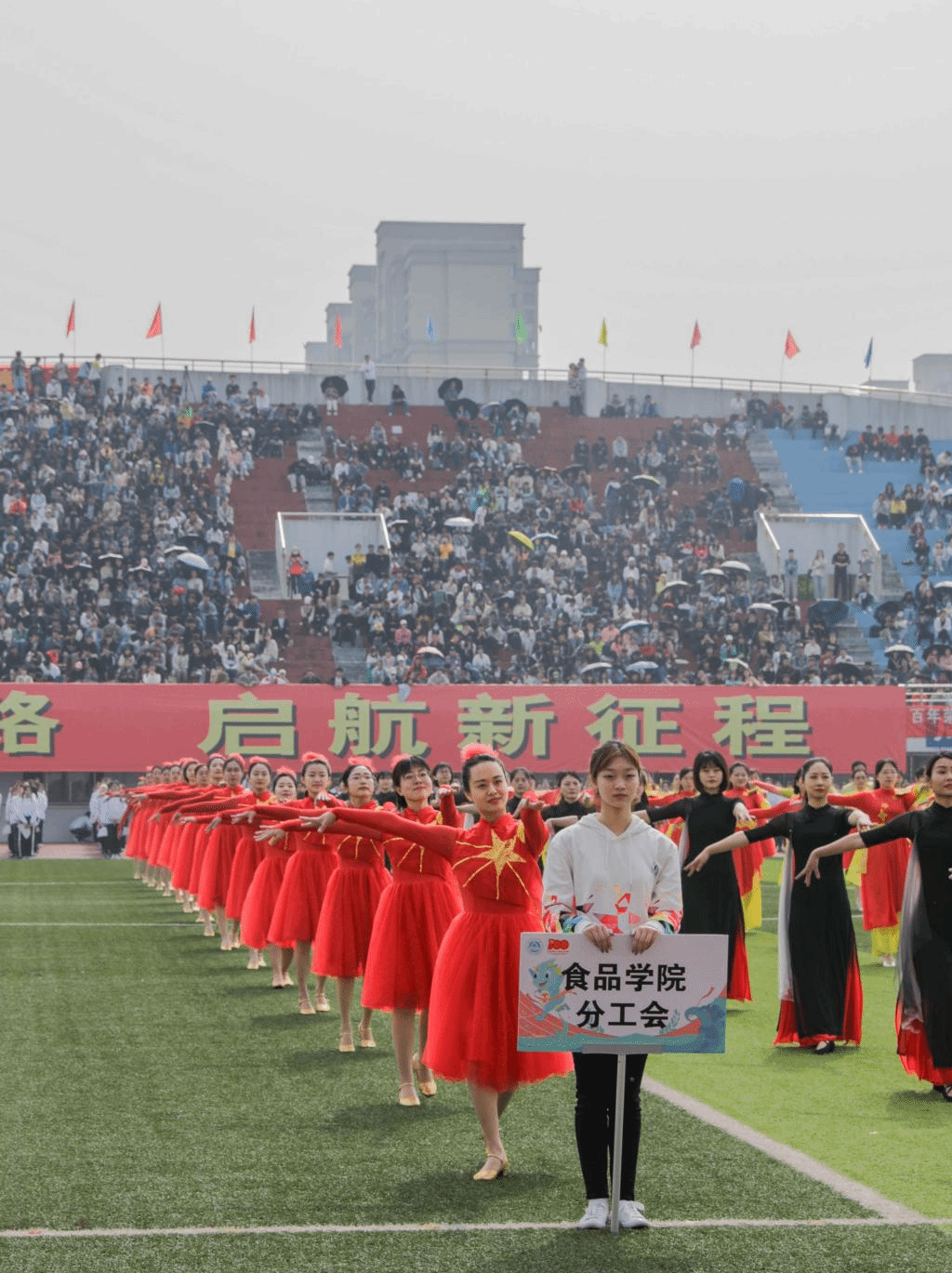 开幕式中,在学院党委副书记魏珍吉的带领下,我院学子身着统一服装,步伐整齐划一、稳健有力,口号气贯长虹、铿锵嘹亮,充分展示了食品学子青春飞扬、挥洒汗水、拼搏奋斗的活力风采,体现出1946伟德国际源自英国运动健儿团结一致、积极向上的精神风貌,赢得了全场观众们的阵阵热烈掌声和欢呼。