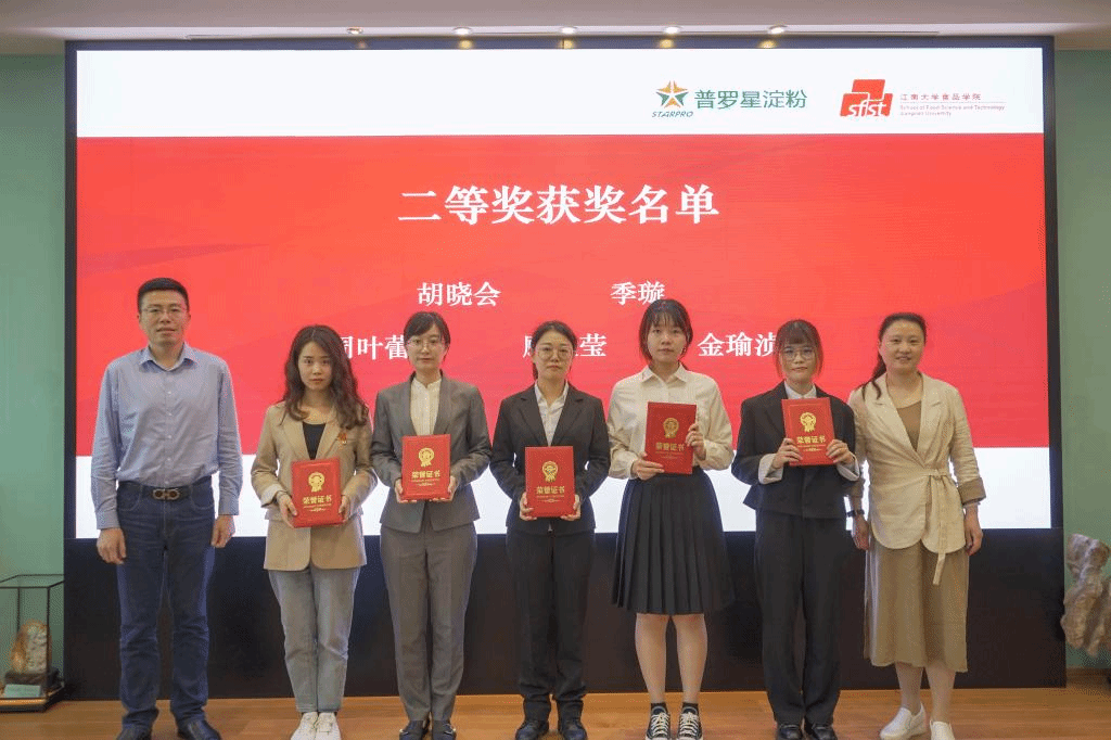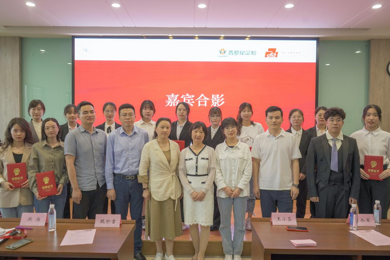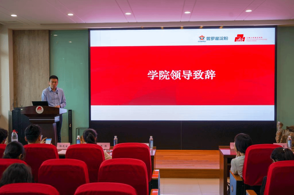 5月26日下午,第四届普罗星淀粉奖学金颁奖典礼暨普罗星淀粉创意大赛宣讲会在食品楼D912会议室成功举行。杭州普罗星淀粉有限公司研发处处长王小芬,应用研发科科长曾令军,1946伟德国际源自英国党委副书记、副院长魏珍吉,1946伟德国际源自英国教授洪雁,辅导员杨光宝以及150余名学生参加了会议。