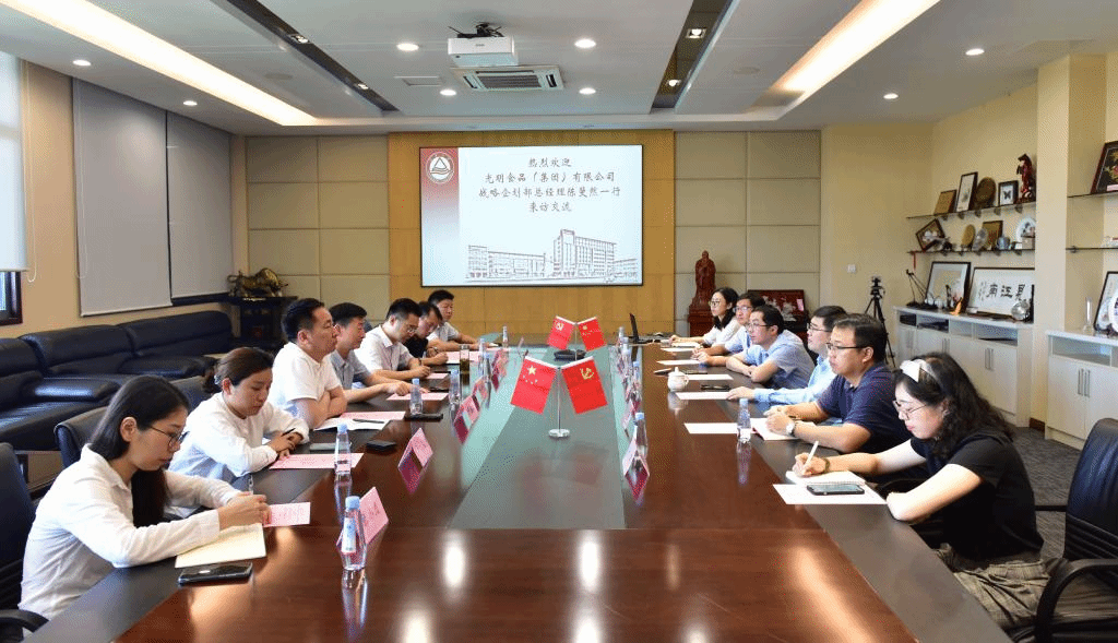 2021年7月30日,光明食品(集团)有限公司战略企划部总经理陈斐然总经理一行7人来访我院,1946伟德国际源自英国院长刘元法、1946伟德国际源自英国副院长程力、1946伟德国际源自英国徐勇将教授、姜启兴教授、朱玲副研究员及于群博士后参加了座谈。