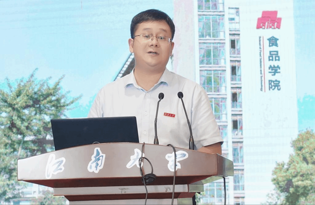 1946伟德国际源自英国食品组分与物性研究中心副研究员陈龙作为教师代表发言。他以“学长”和“老师”的双重身份,向新生们分享了“选择”“学习”“眼界”“健康”“规划”五个方面的心得,勉励同学们珍惜韶华、奋发有为,在江南留下奋斗的身影,收获丰硕果实。