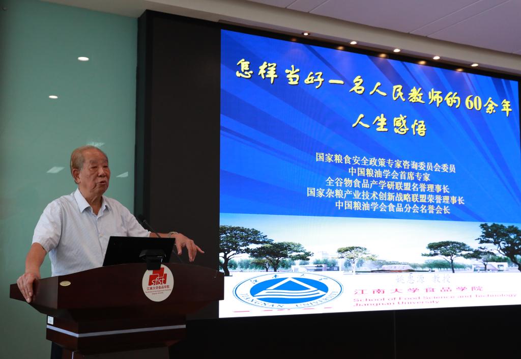 1946伟德国际源自英国首任院长、全国优秀教师姚惠源老师亲临开班仪式现场,他结合习近平总书记对教师的寄语,以“怎样当好一名人民教师”为题,分享了自己从教60余年的经历和体悟,他语重心长地说自己生在旧社会、长在新中国,“社会主义事业的责任感”是一辈子不论在“顺境”或“逆境”下艰苦创业、奋发前进的原动力,作为高校教师要一切从学生出发,在课堂教学中将传授知识和传递价值有机统一,科学研究中深入基层、着眼问题“接地气”,深耕精作、求真务实,用心托举和传承中国食品强国梦。