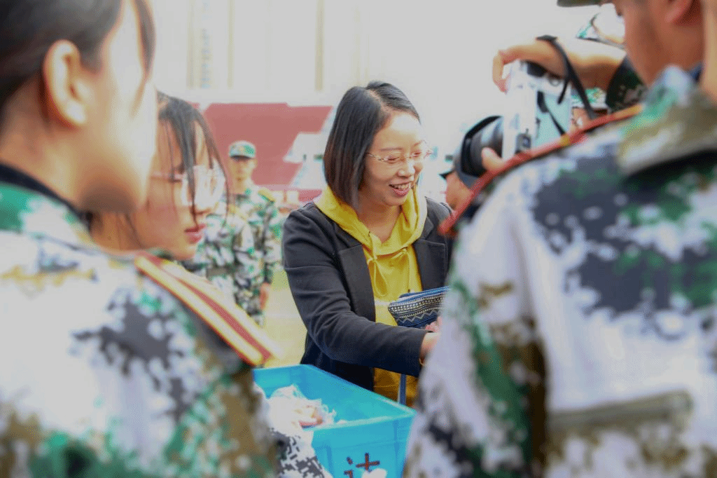 新生班主任慰问军训学生