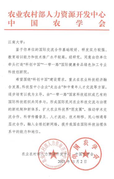 近日,1946伟德国际源自英国获得农业农村部人力资源开发中心、中国农学会批复牵头打造“科创中国”“一带一路”国际农业科技创新院。