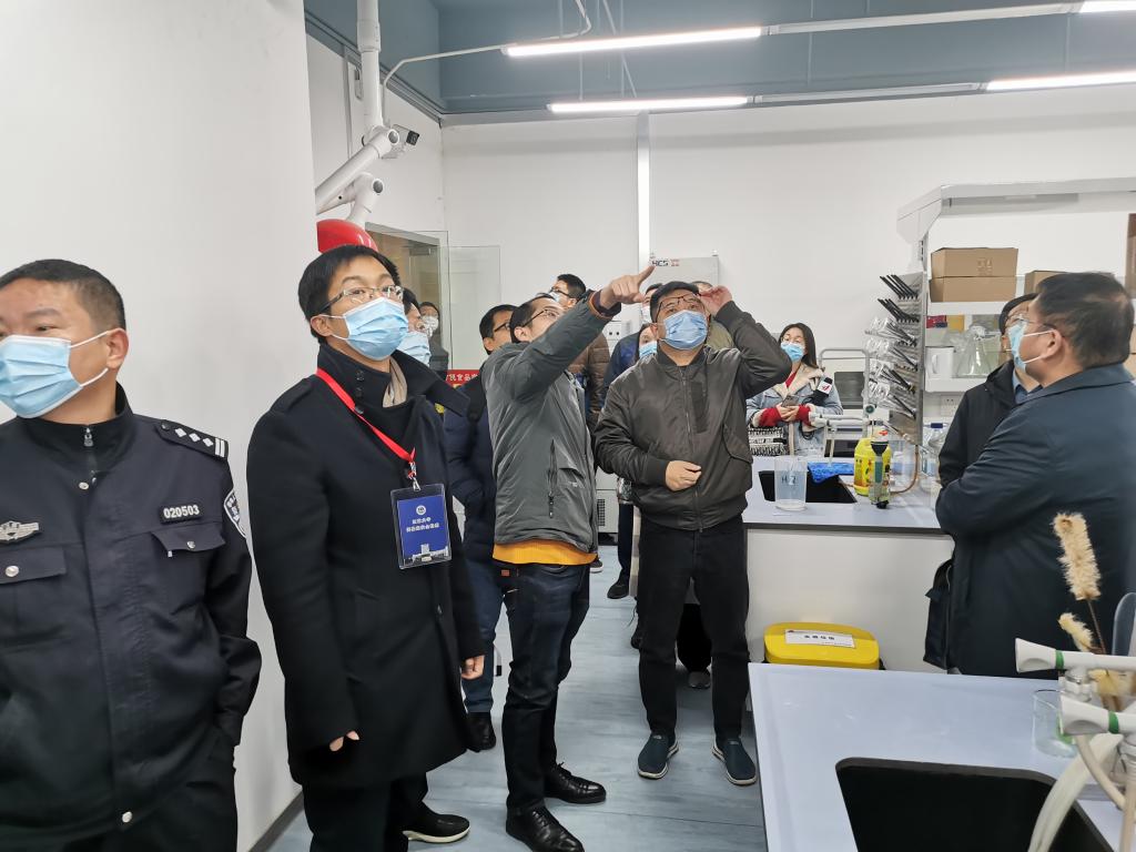 2022年1月13日无锡市校安委领导范良、潘鹰同志带队,协同市教育局、市公安局、市生态环境局、市应急局、市消防单位相关职能处室负责同志及专家联合对伟德国际victor1946校园安全与实验室安全进行了检查。上午10点,检查组赴1946伟德国际源自英国对部分科研实验室进行检查,伟德国际victor1946副校长堵国成、实验室与设备管理处处长刘仁、副延长赵爱军、保卫处副处长吴江、食品生工楼楼长王国平、1946伟德国际源自英国副院长程力、实验室主任王文龙陪同检查,并对专家组的问询进行了回答。