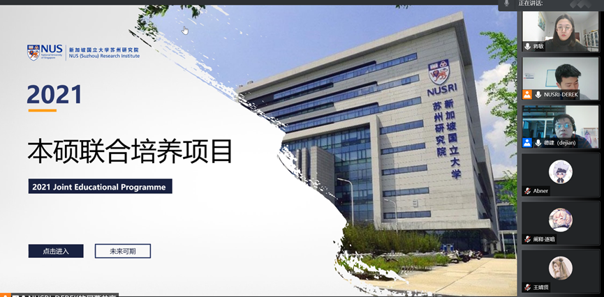 1月13日,新加坡国立大学(下面简称新国大)与1946伟德国际源自英国“3+1+1”联合培养项目宣讲会在线上举行。新国大黄德建教授、新国大苏州研究院黄子源老师、1946伟德国际源自英国国际交流秘书蒋敏老师、2021年度参加该项目交换生以及30余名学生共同参加了此次宣讲会。