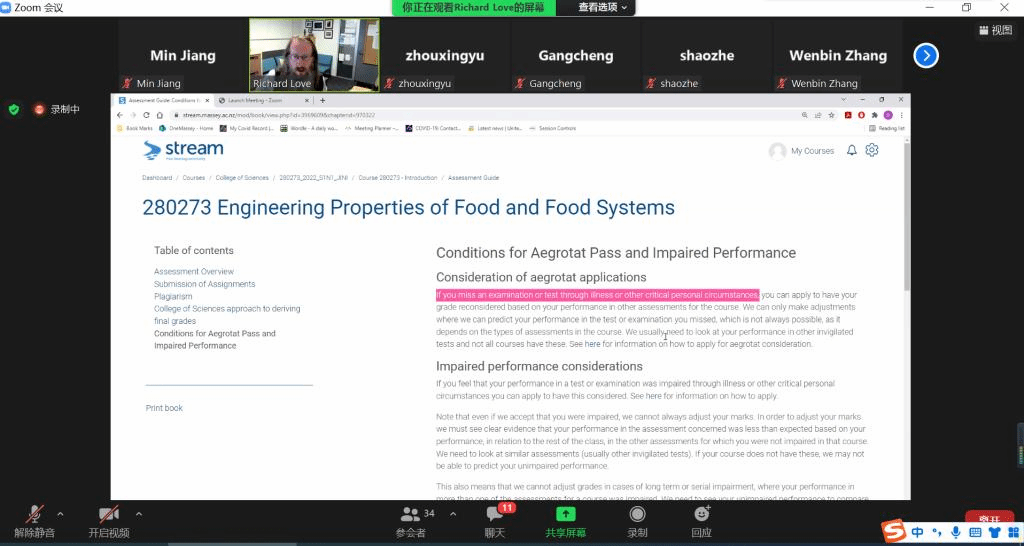2月25日,伟德国际victor1946-新西兰梅西大学食品科学与工程专业中外合作办学本科教育项目的外教课程正式开课。本次外教课程通过Zoom会议方式进行。