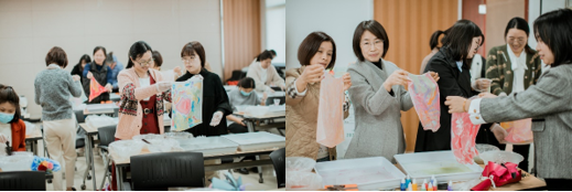 整个活动欢声笑语,一条条独特的丝巾也完美呈现。通过本次活动,大家既掌握了丝巾的制作技术,又获得了独一无二的节日礼物,愉悦了心情,增进了感情,整个活动在甜美浪漫中圆满结束。