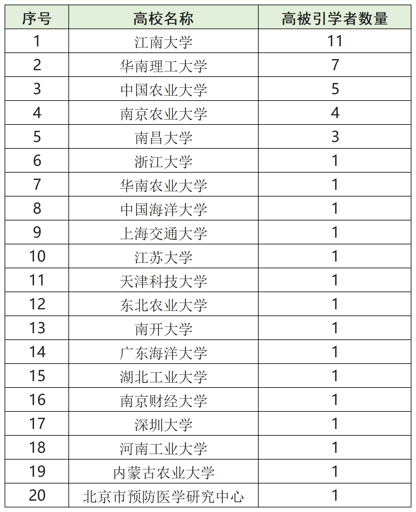 食品科学与工程学科2021中国高被引学者统计