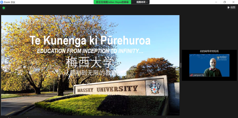 梅西大学Rob Stevens先生首先致辞,他高度评价了伟德国际victor1946和梅西大学联合办学项目的合作质量和成效;Julian Heyes教授介绍了梅西大学优美的校园环境、办学条件、教育理念、校园文化、大学生活以及学生们的学习方式,并欢迎新生2025年到新西兰梅西大学学习和生活;Richard Love博士线上给同学们简要讲述了项目的发展历程,特别是针对同学们的学习提出了期许和建议。