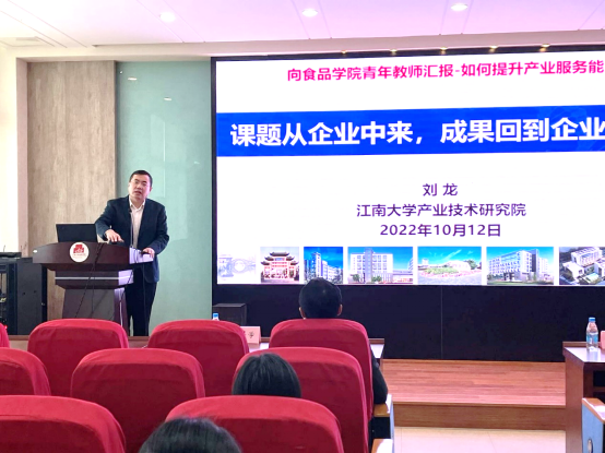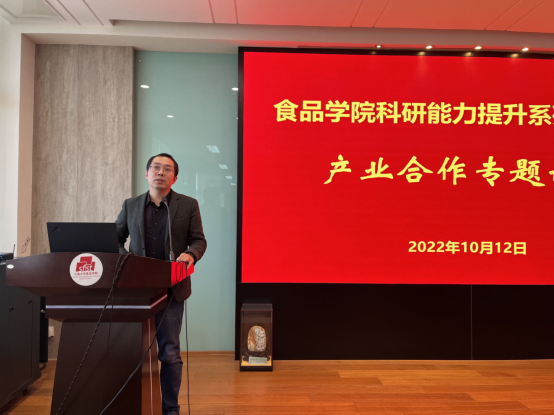 2022年10月13日下午,1946伟德国际源自英国“科研能力提升系列活动——产业合作专题讲座”在食品楼D912举行。学院邀请了产业技术研究院院长刘龙教授、1946伟德国际源自英国朱科学教授和设计学院吴祐昕教授为青年学者们分享产业合作方面的经验做法。讲座由1946伟德国际源自英国程力副院长主持,40余名青年教师和博士后参会交流学习。