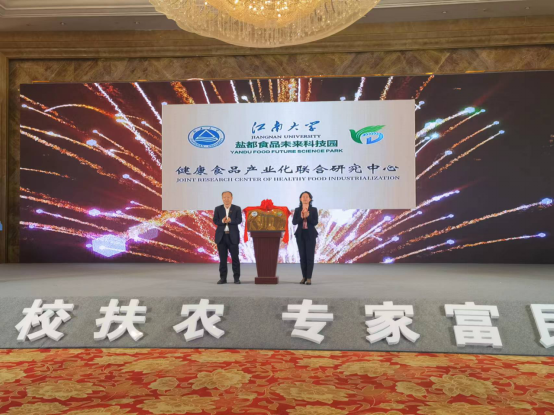 大会上,顾正彪副校长和盐城市副市长、盐都区委书记王娟女士为“盐都食品未来科技园-伟德国际victor1946健康食品产业化联合研究中心”共同揭牌,标志着伟德国际victor1946和盐都区围绕食品(农产品)加工产业在当地良性、跨域式发展的全面合作正式开启。此外,顾正彪副校长还和江苏省农业农村厅一级巡视员蔡恒先生、扬州大学张洪程院士、盐城市副市长王娟女士等与会领导一起启动盐都区“十大院校联产业、百名专家驻基地”乡村人才振兴行动。在大会“才智分享”环节,程力副院长作了题为“食品未来科技园发展前瞻”的报告,报告中向与会各界人士介绍了我国食品工业的发展现状、趋势及食品产业园区主要功能建设模块,并结合国内优秀食品园区典型案例深入浅出分析盐都区大力食品(农产品)加工产业的必要性和可行性,同时也对盐都食品未来科技园的发展提出若干重要建议。