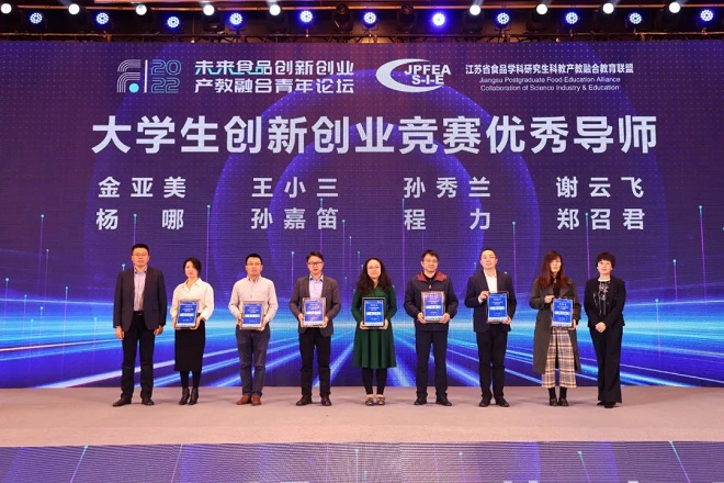 随后举行了1946伟德国际源自英国大学生创新创业竞赛优秀导师颁奖仪式,对近年来指导食品学子荣获A1类学科竞赛国家级奖项的教师进行嘉奖。学院党委书记傅莉莉宣读获奖名单。张菁燕、魏珍吉为获奖导师颁授奖牌。