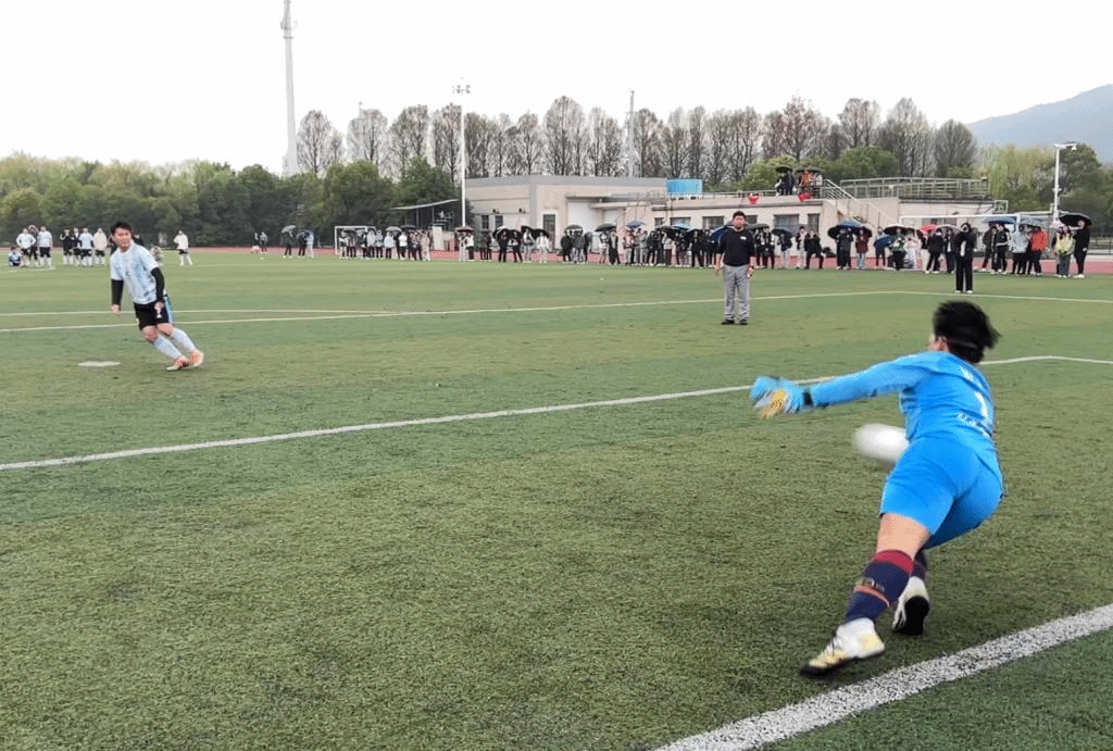 被罚下一名后卫中坚,10人应战的1946伟德国际源自英国教练组立即进行战术调整换人,针对性布置落位和防守,加强跑动和补位。替补队员和现场百余名观众和为场上队员加油呐喊,队员们拼劲十足,展开了更加顽强的拼抢,多次切断机械学子传接球。最终食品学子凭借团结的防守,将比分定格为0:0,比赛进入紧张刺激的点球大战。