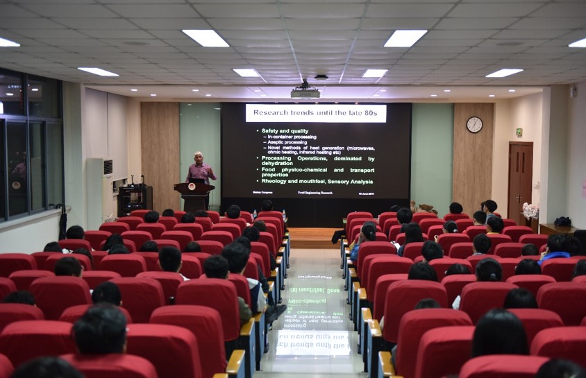 随后,1946伟德国际源自英国邀请Niranjan教授在D912会议室举办“Food Science and Technology Research: Where from? And where to?”的学术讲座。讲座由1946伟德国际源自英国院长助理徐勇将教授主持,近120名1946伟德国际源自英国本科生参加了讲座。讲座伊始,徐勇将教授简单介绍了Niranjan教授的工作经历、教学领域及研究领域,并对此次教学活动表示感谢和热烈欢迎。讲座中,Niranjan教授重点介绍了自上世纪80年代至今的食品研究发展,围绕从食品保藏转变到食品品质与健康、从食品加工过程研究转变到产品开发研究、从以农业为核心的食品研究转变到以消费者为核心的食品研究等核心方面,深入分析了食品发展历史及未来趋势,同时指出了食品行业高质量发展的良好前景。接着,Niranjan教授和Qiaofen Cheng教授与同学们进行了良好互动沟通,对同学们提出的问题进行了详细解答,现场气氛热烈。最后,Niranjan教授对同学们提出了殷切的期望并表达了美好的祝愿,希望同学们充分认识食品行业的良好发展前景,不断开拓国际视野,刻苦钻研,学有所成。