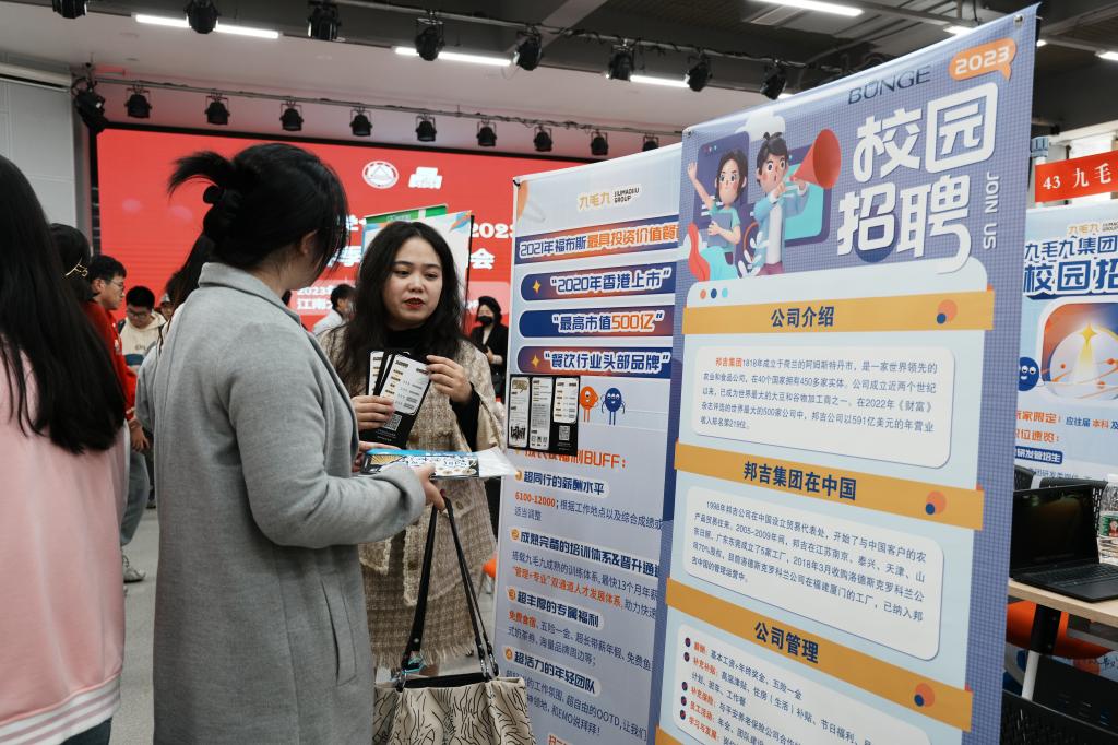 本科毕业生卢梦娇很早就开始关注招聘会信息,提前了解企业背景,选择心仪企业,做了十足的准备。硕士研究生袁志良表示,他更关注招聘岗位和所学专业的契合度,希望能进入企业研发系统,未来在相关领域实现新突破。除了应届毕业生,一些往届毕业生、低年级在校生也来到现场。招聘人员耐心讲解,使同学们对整个行业增进了认知和了解。招聘会持续整整4个小时,现场气氛十分热烈。