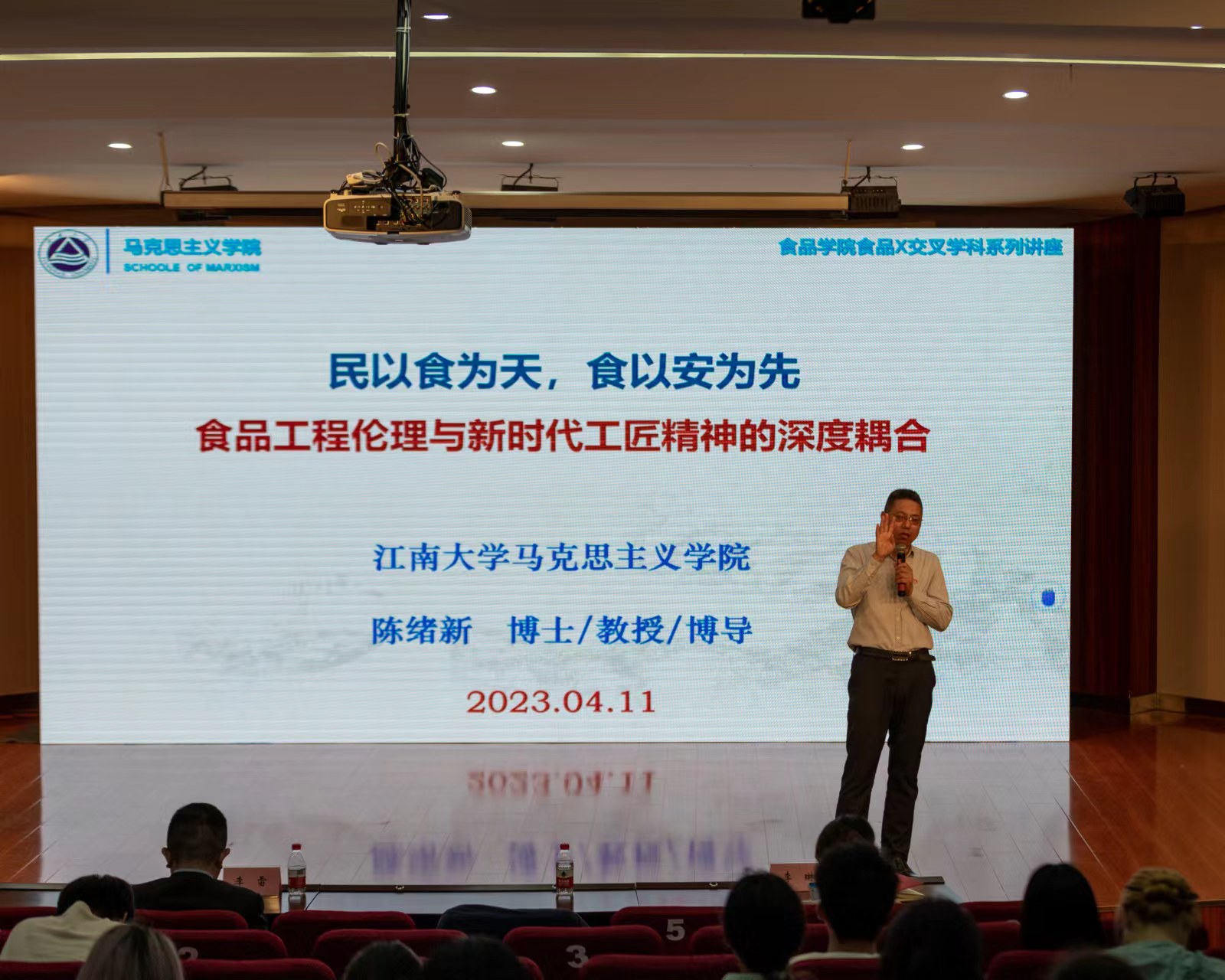 4月11日下午,“食品X”交叉学科系列讲座在北区大学生活动中心再次开讲。本次活动邀请到马克思主义学院博士生导师陈绪新教授作题为《民以食为天,食以安为先——实现食品工程伦理与新时代工匠精神的深度耦合》的报告。1946伟德国际源自英国党委副书记、副院长李雷,分团委副书记李琳及380余名食品学子参加活动。2020级本科生辅导员王文燕担任主持。