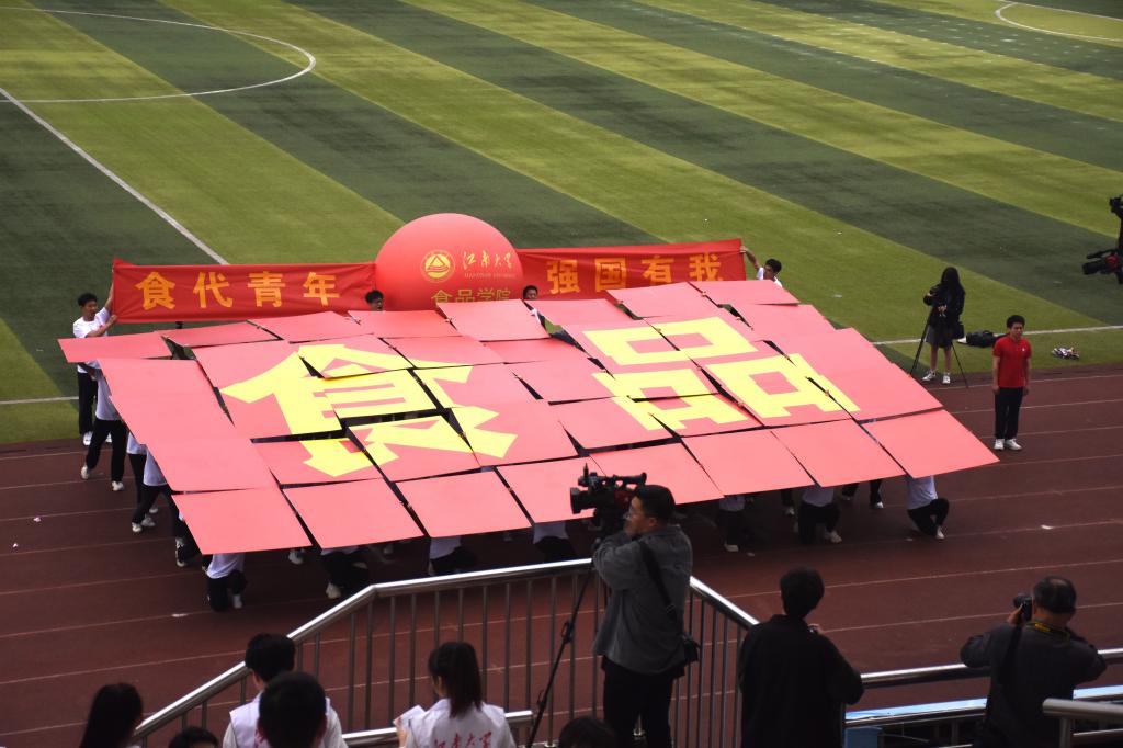 本届运动会开幕式继承往年传统,采用入场仪式与团体展演相结合的形式。国旗、校旗、会徽方阵气宇轩昂、步履铿锵,诠释江南体育精神。1946伟德国际源自英国方阵由46名本科生和研究生共同组成,代表着全院3600名师生员工。他们进的了实验室搞科研,战的了田径场争金牌!紧随方阵的巨型红球,寓意“红日初升,其道大光”,每一位学子背后都是1946伟德国际源自英国争先创优、光芒万丈的精神依靠。江南食品人,敢为天下先。“食”代学子将赓续使命,续写华章!
