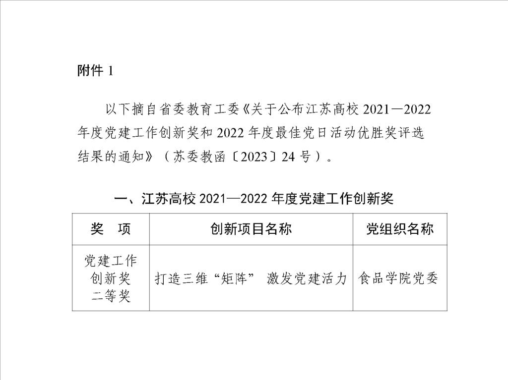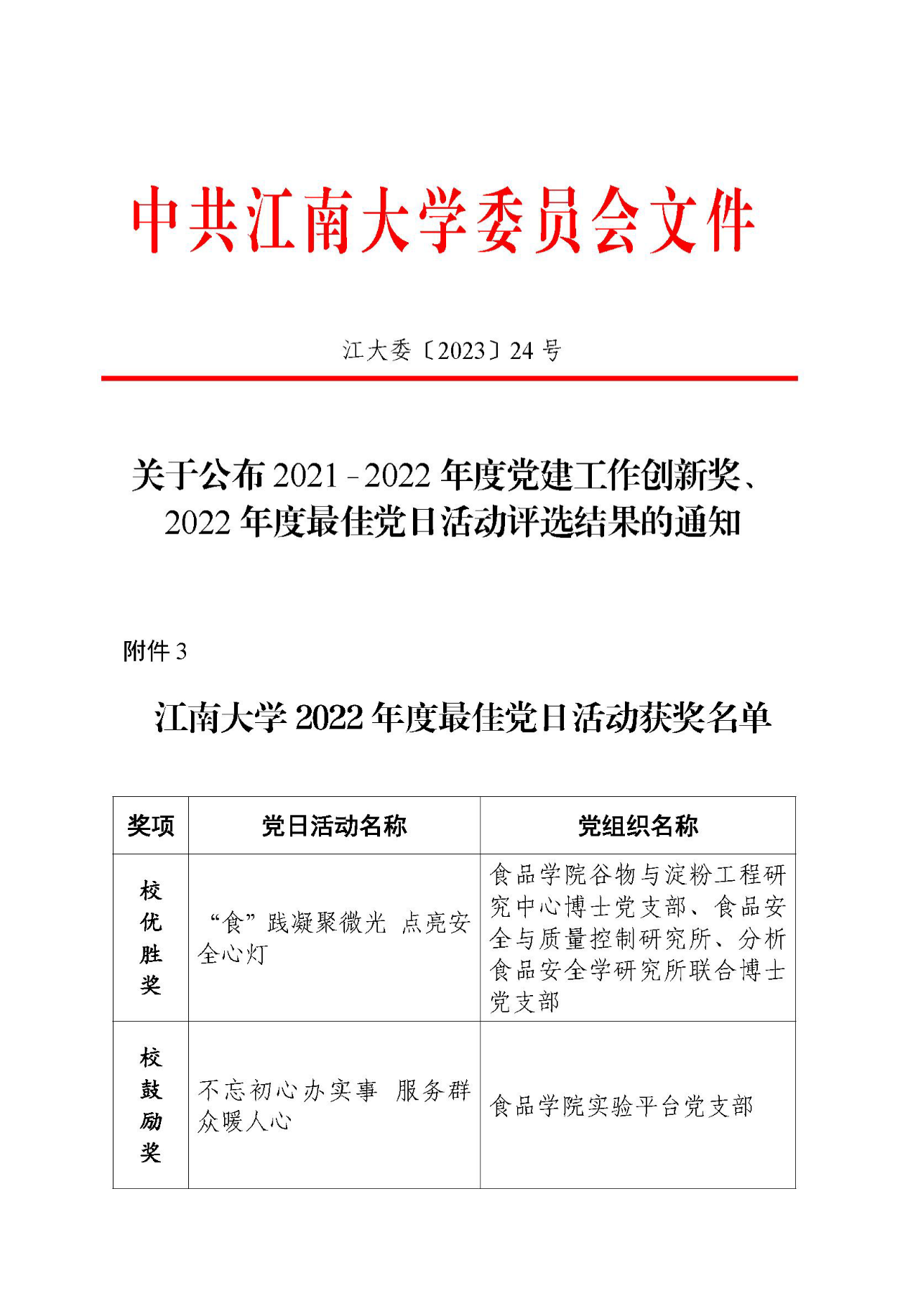近期,江苏省委教育工委公布了江苏高校2021-2022年度伟德国际创新奖评选结果,学校党委公布了伟德国际victor19462022年度最佳党日活动获奖名单。1946伟德国际源自英国获江苏省伟德国际创新奖二等奖,谷物与淀粉工程研究中心博士党支部和食品安全与质量控制研究所、分析食品安全学研究所联合博士党支部及实验平台教工党支部分别获伟德国际victor1946最佳党日活动优胜奖和鼓励奖。
