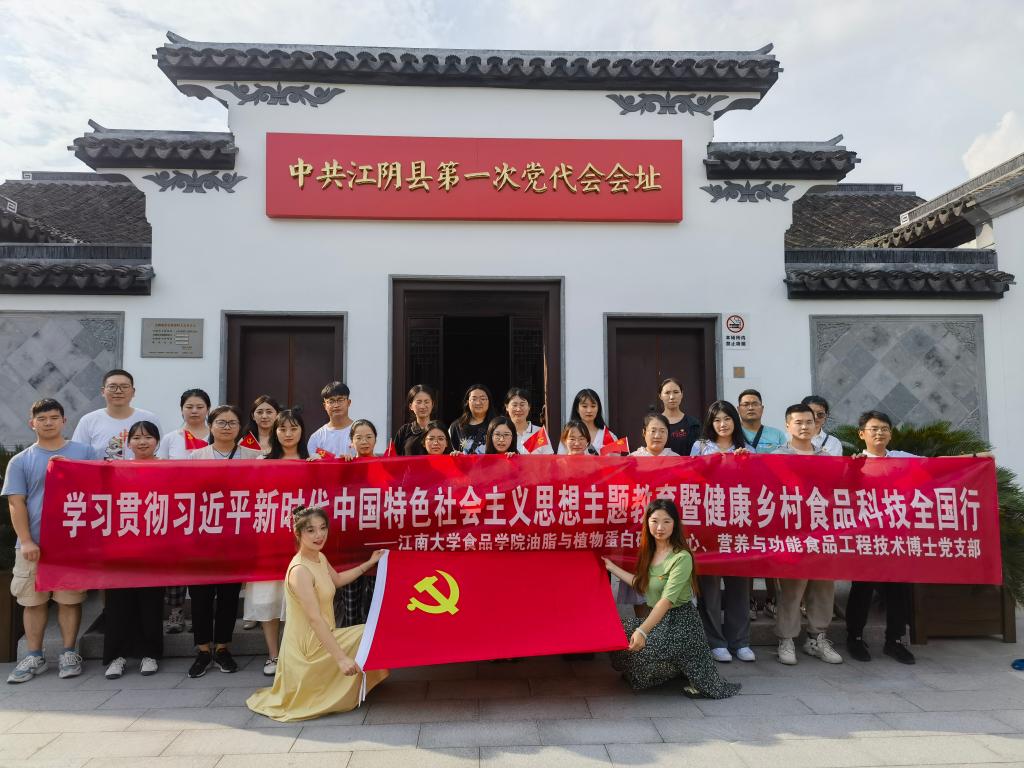在全党深入开展学习贯彻习近平新时代中国特色社会主义思想主题教育之际,1946伟德国际源自英国组织党员同志,以实际行动助力乡村振兴,共筑健康中国。7月14日,油脂与植物蛋白研究中心博士党支部,营养与功能食品工程技术、国家工程实验室联合博士党支部两个省级样板支部组成近四十人的博士科技服务团前往江阴市新桥镇,开展“健康乡村,食品科技全国行”党日活动与社会实践活动。