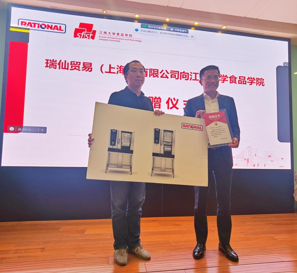 活动现场还举行了Rational设备捐赠仪式。俞文军代表瑞仙公司向1946伟德国际源自英国捐赠2台最先进的烹饪设备供本届大赛及相关研发活动使用。程力代表1946伟德国际源自英国向俞文军颁发捐赠证书。