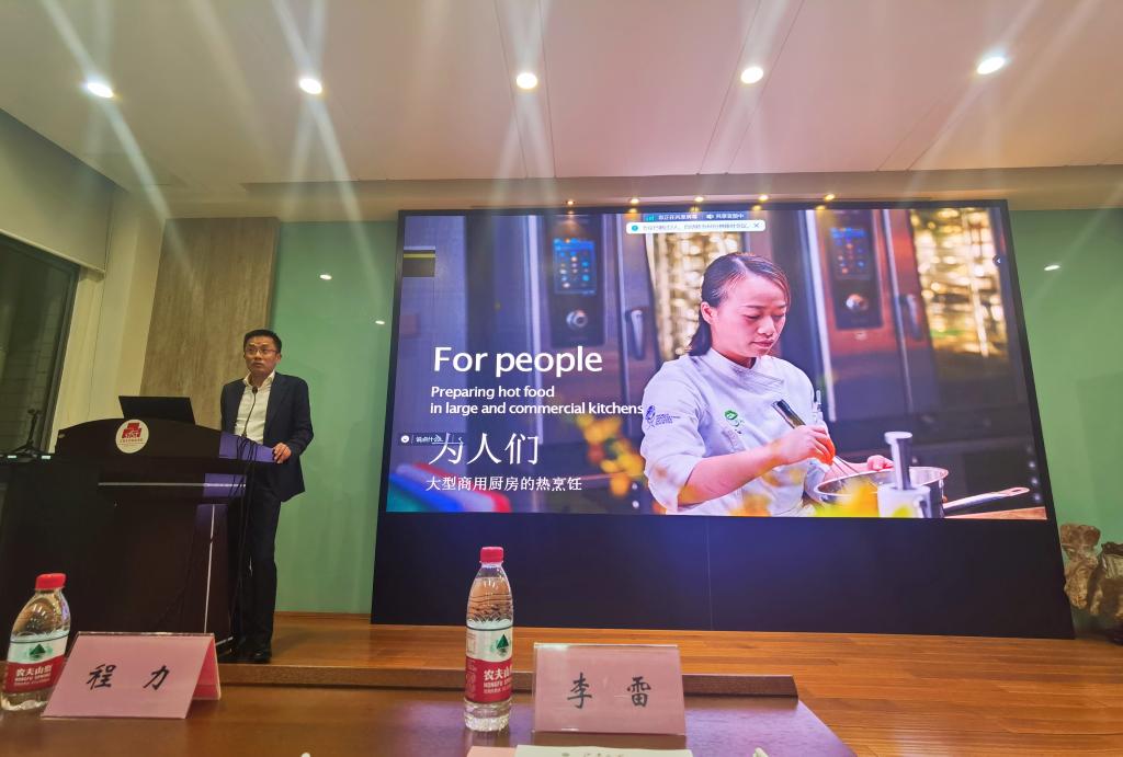 俞文军从品牌创立的初衷谈起进行致辞。他围绕客户满意、专注、自我管理的企业哲学,重点强调了物理学家、食品科学家、研发工程师和大厨的紧密合作是Rational独特创新力的坚实基础。面对世界食品行业新困境,他鼓励当代大学生应从国际视野和战略格局出发,重塑关系国计民生的产业优势,发挥交叉融合的产业特点,推动食品加工业朝着健康、安全、可持续的方向发展,为实现高品质食品加工工艺提供“中国方案”。