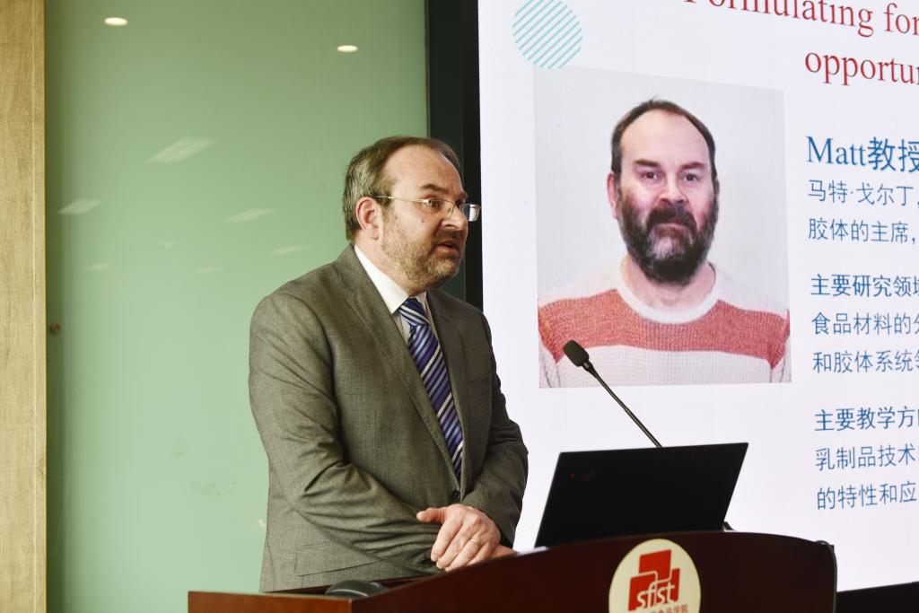 Matt Golding作题为“Formulating for functionality: addressing the challenges and opportunities in clean label food manufacture”的学术报告。他重点介绍了食品添加剂在当前盛行的“清洁饮食”配料表境况中的机遇和挑战,深入分析其发展历史与未来趋势。他与参会同学双向交流,现场气氛十分热烈。