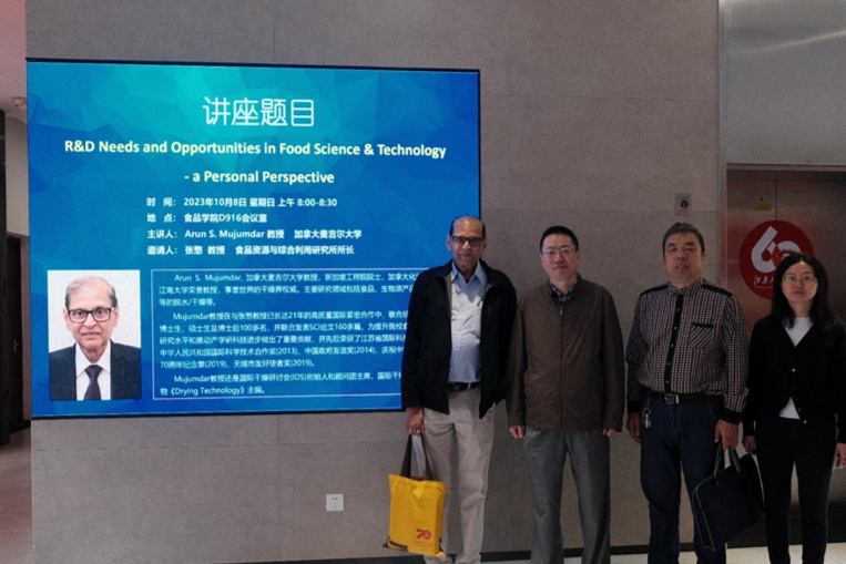 2023年10月6-19日,1946伟德国际源自英国张慜教授团队长期合作的高端专家加拿大麦吉尔大学Arun S. Mujumdar教授在江苏省“生鲜食品智能加工与品质监控”国际联合实验室的邀请下,再次访问伟德国际victor1946并走访团队合作企业。