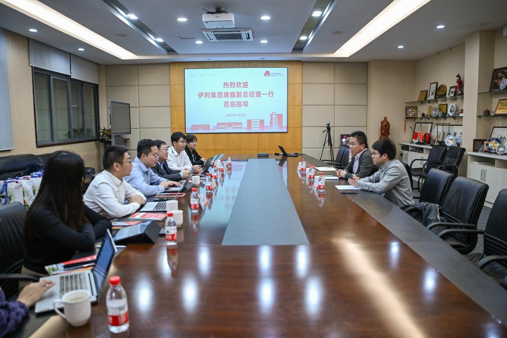 李雷对唐巍一行来访表示热烈欢迎,并介绍了1946伟德国际源自英国基本情况,分享了学院在人才培养和产教融合等方面的工作成效。唐巍介绍了伊利的发展历程、目标愿景以及基于公司战略驱动的人才需求。双方与会人员围绕创新创业、竞赛育人等方面进行深入探讨。