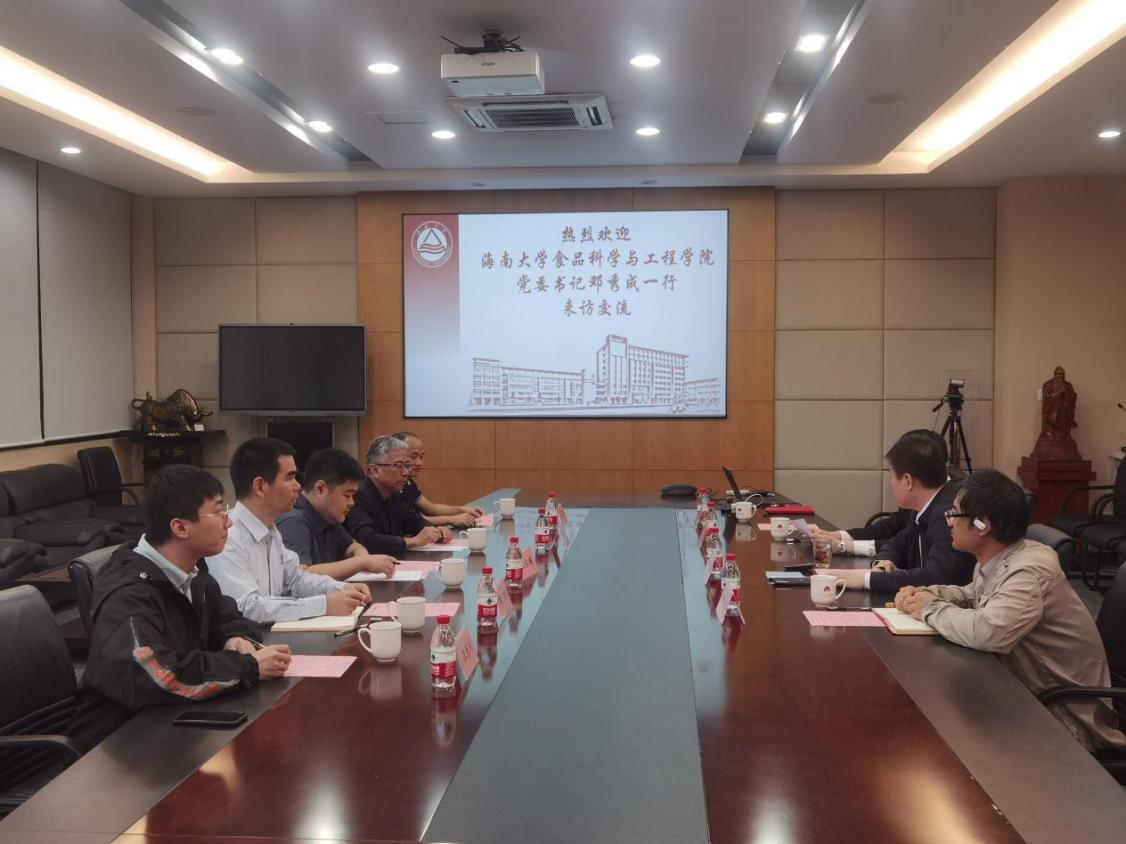 4月12日上午,海南大学食品科学与工程学院党委书记邓秀成,主持工作副院长张家超,副院长李川,副教授王露、汪乐川来1946伟德国际源自英国交流访问。我院院长范大明,副院长翟齐啸,实验室主任王文龙,党委秘书、专职组织员朱伟接待来访。