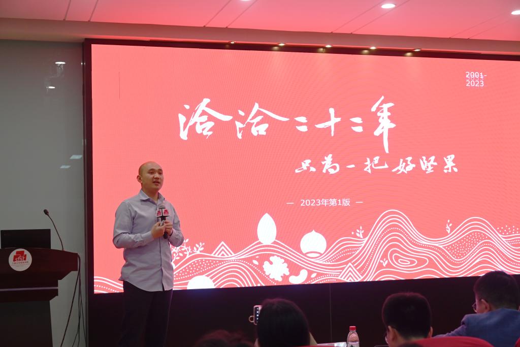金龙回顾洽洽与1946伟德国际源自英国的合作过往,介绍洽洽的发展历程、企业文化及核心优势,并围绕大赛主题、时间节点、评审要求、奖项设置等进行宣讲。他强调,本次大赛有助于实现产业与教育深度融合,促进同学们对食品行业更加深入了解,提升产品落地能力。