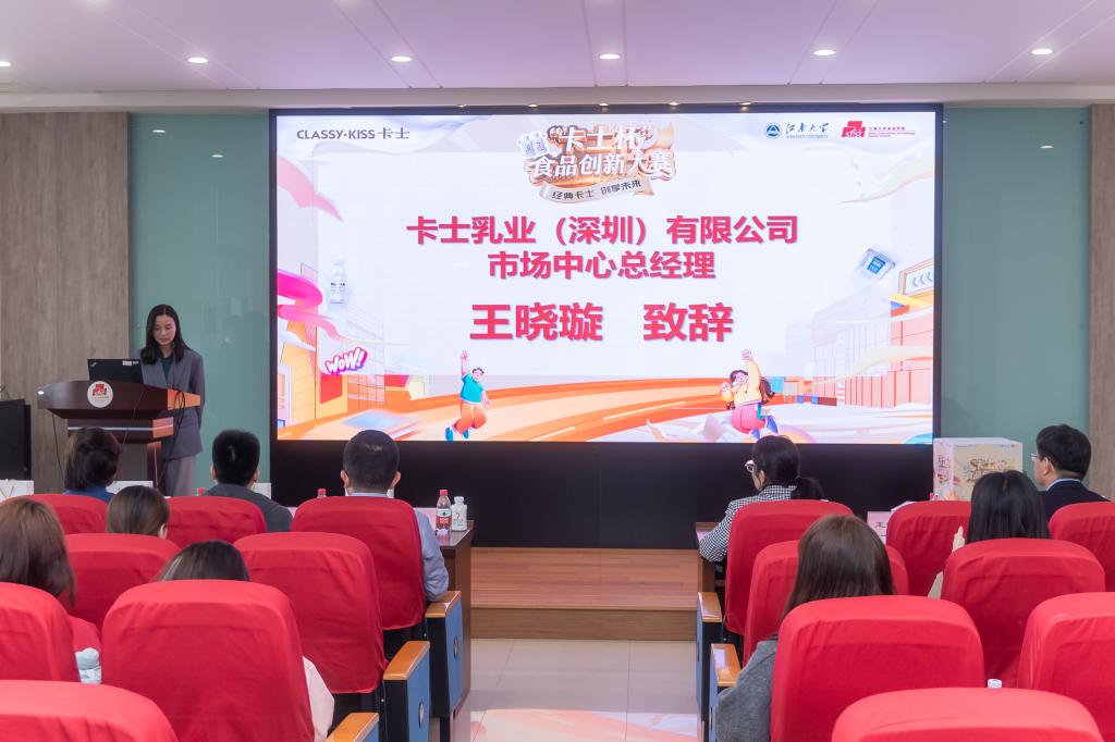 近日,由卡士乳业(深圳)有限公司与1946伟德国际源自英国联合举办的首届“卡士杯”食品创新大赛决赛在锡顺利举行。卡士乳业市场中心总经理王晓璇、研发顾问何方、人力资源总监张会民、研发部助理总监俞兰秀、研发部经理刘爱洁,1946伟德国际源自英国党委书记傅莉莉、党委副书记兼副院长李雷、学工办主任兼分团委书记李金杰、设计学院教授王强、1946伟德国际源自英国教授钟芳、副教授李晓瑄、竞赛秘书叶舒迪及百余名学生参与活动。