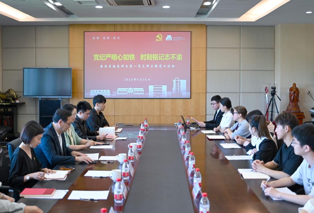 本科生第一党支部书记曹敏首先分享党纪学习心得体会。她指出,开展党纪学习教育是以习近平同志为核心的党中央作出的重大决策,是“党之大计”。师生党员要自觉敬畏和恪守纪律规矩,做“政治上的明白人,工作上的老实人,生活中的干净人”。